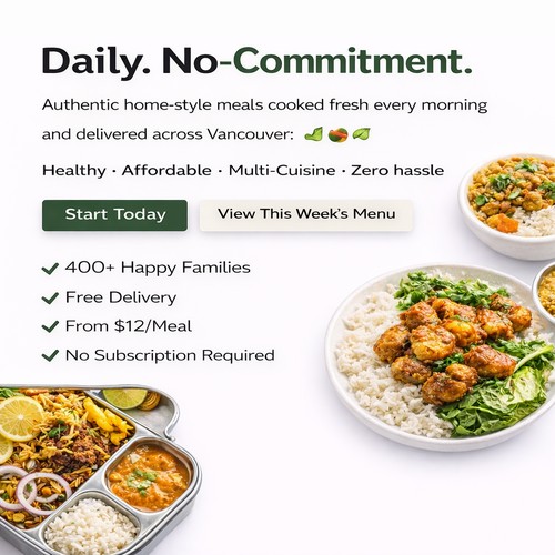 Fresh Homemade Tiffin & Meal Delivery Service at Everyday Tiffins, we deliver fresh, homemade meals across Vancouver for busy families, professionals, and students who want healthy food without the daily cooking.